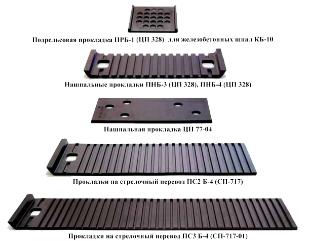 The purpose of the pads is as follows. They are installed on reinforced concrete or wooden sleepers, used to attach the rail to the concrete. Rubber pads for the rail prevents the displacement of the rail, significantly reduces the dynamic loads. In addition, it serves as a source of electrical insulation on the sleepers.