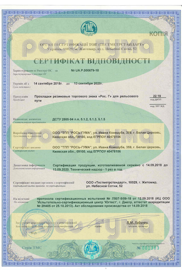 In Ukraine, pads under the rails are manufactured according to DSTU 2805-94 . Rubber pads for the track have a different thickness from 6 to 10 mm. Thin products are used for ordinary ways, but for tunnels and racks it is recommended to use thicker products. The price of pad depends on the chosen thickness.